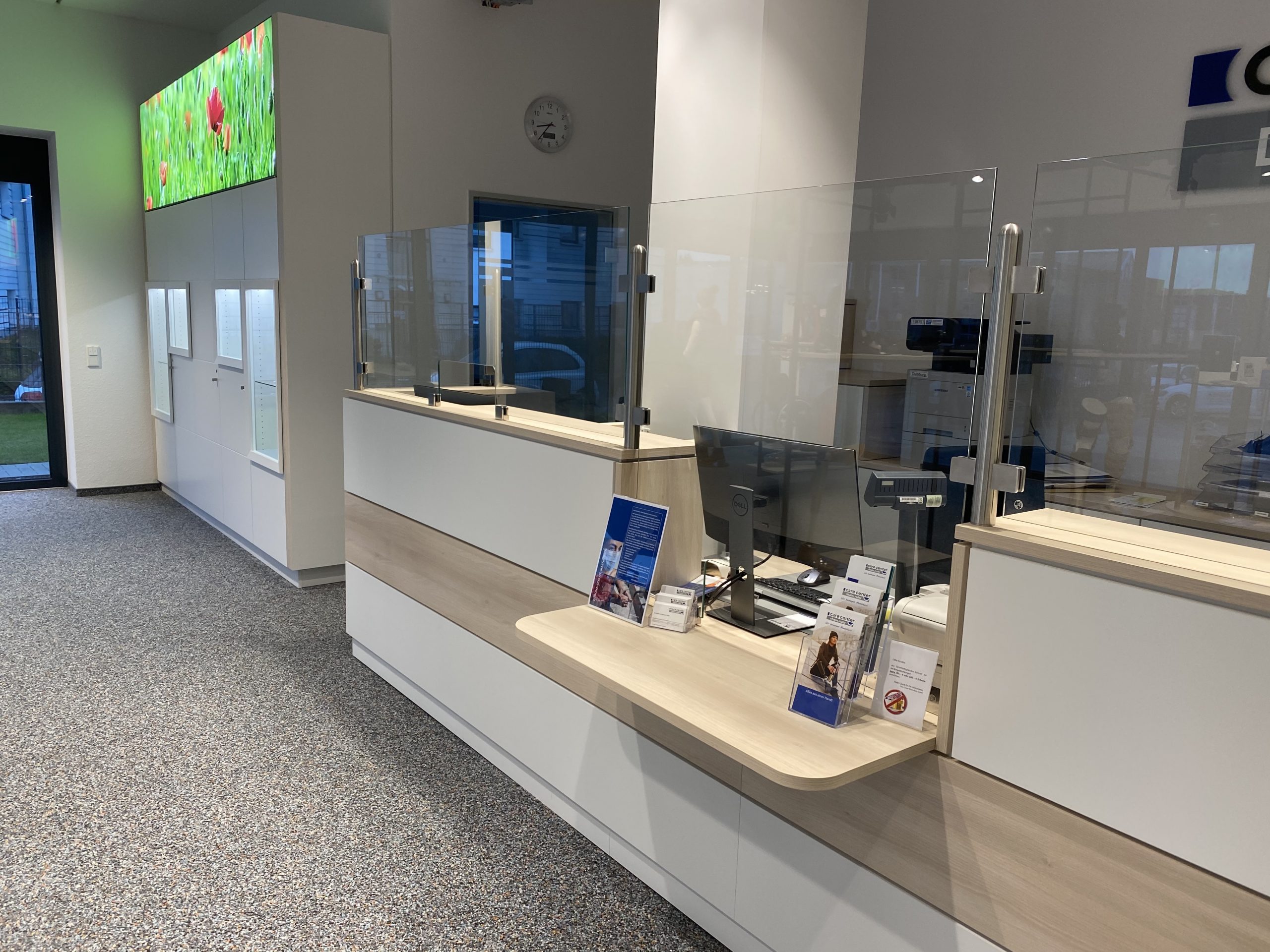 - im Empfangsbereich bei Dienstleistungsunternehmen
